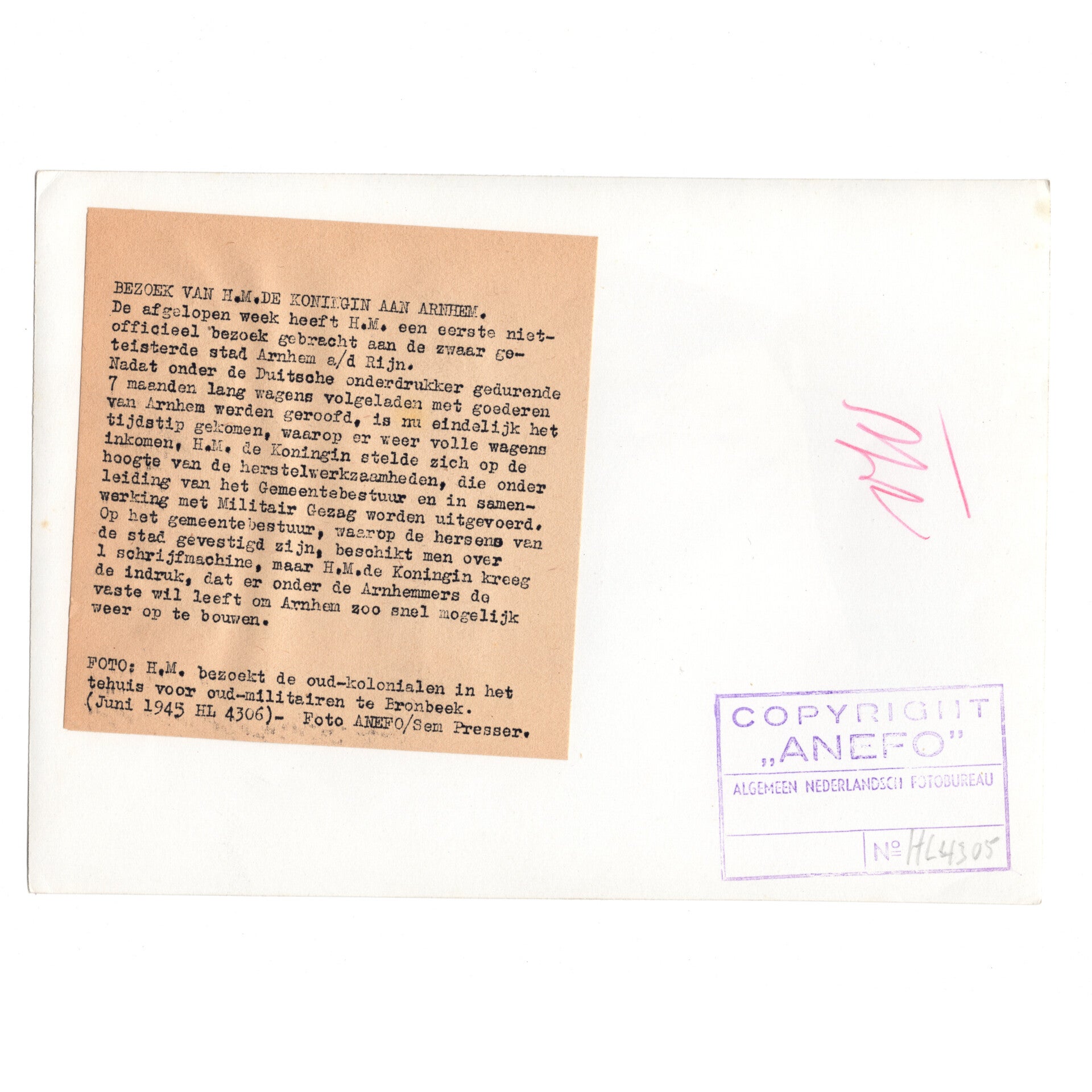 The press photo has a nice large format and was taken during the months after the liberation of the Netherlands. Bernard, the queen and the princesses are back in the Netherlands.