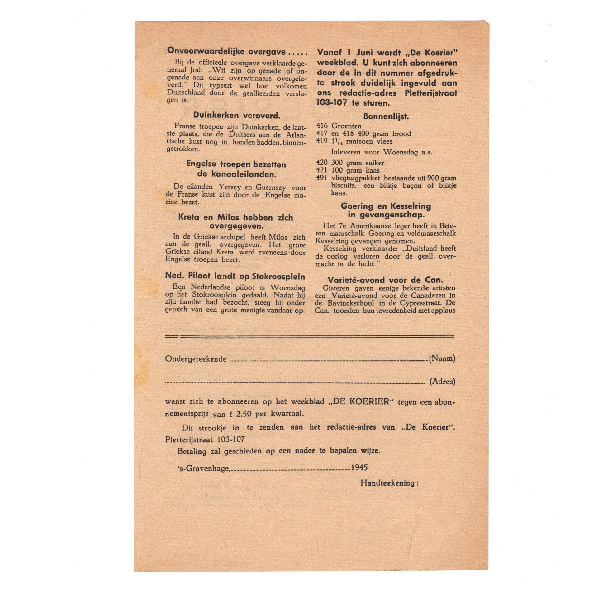 Deze krantjes werden tijdens, en vlak na de bezetting gedrukt door het Nederlandse verzet. In deze krantjes stond bijvoorbeeld informatie over geallieerde legers, het koningshuis, bevrijde delen van europa, Nederlands-Indie enz. Een mooie toevoeging voor je collectie!