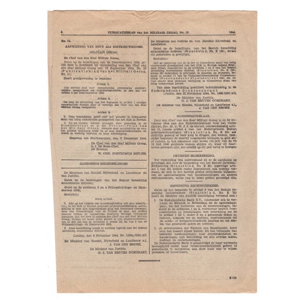 Hierin staan nieuwe verordeningen beschreven die werden ingevoerd door het Militair gezag.