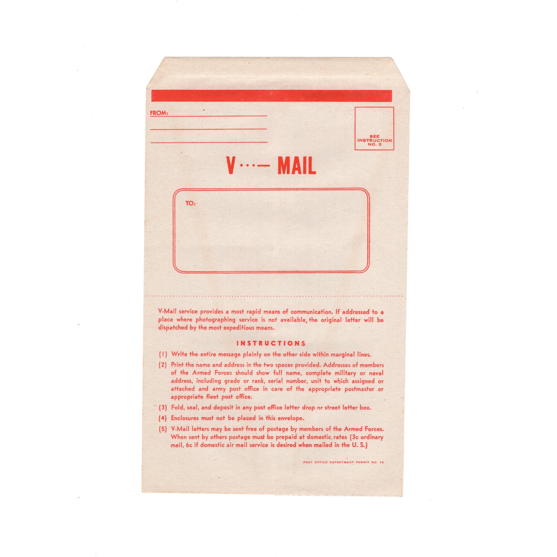 V-mail stands for Victory-Mail. To reduce the cost of sending a letter through the military mail system, a V-mail letter would be censored, copied to film and printed back on paper upon arrival at its destination.