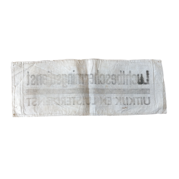 Deze armbanden werden gedragen door leden van de Luchtbeschermingsdienst (LBD). De armband is nog netjes voor zijn leeftijd, maar heeft enige gebruikssporen. Een leuk item om toe te voegen aan je collectie! Deze armband werd gebruikt voor de tak uitkijk en luisterdienst.