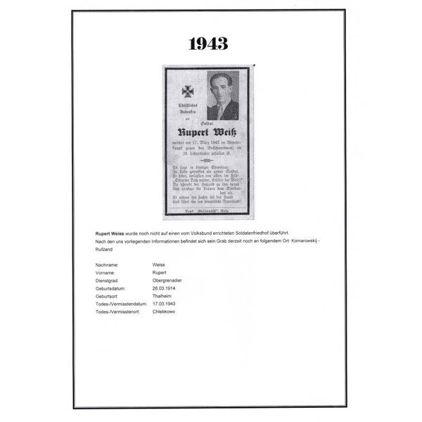 WWII German Death Notice Eastern Front 1943