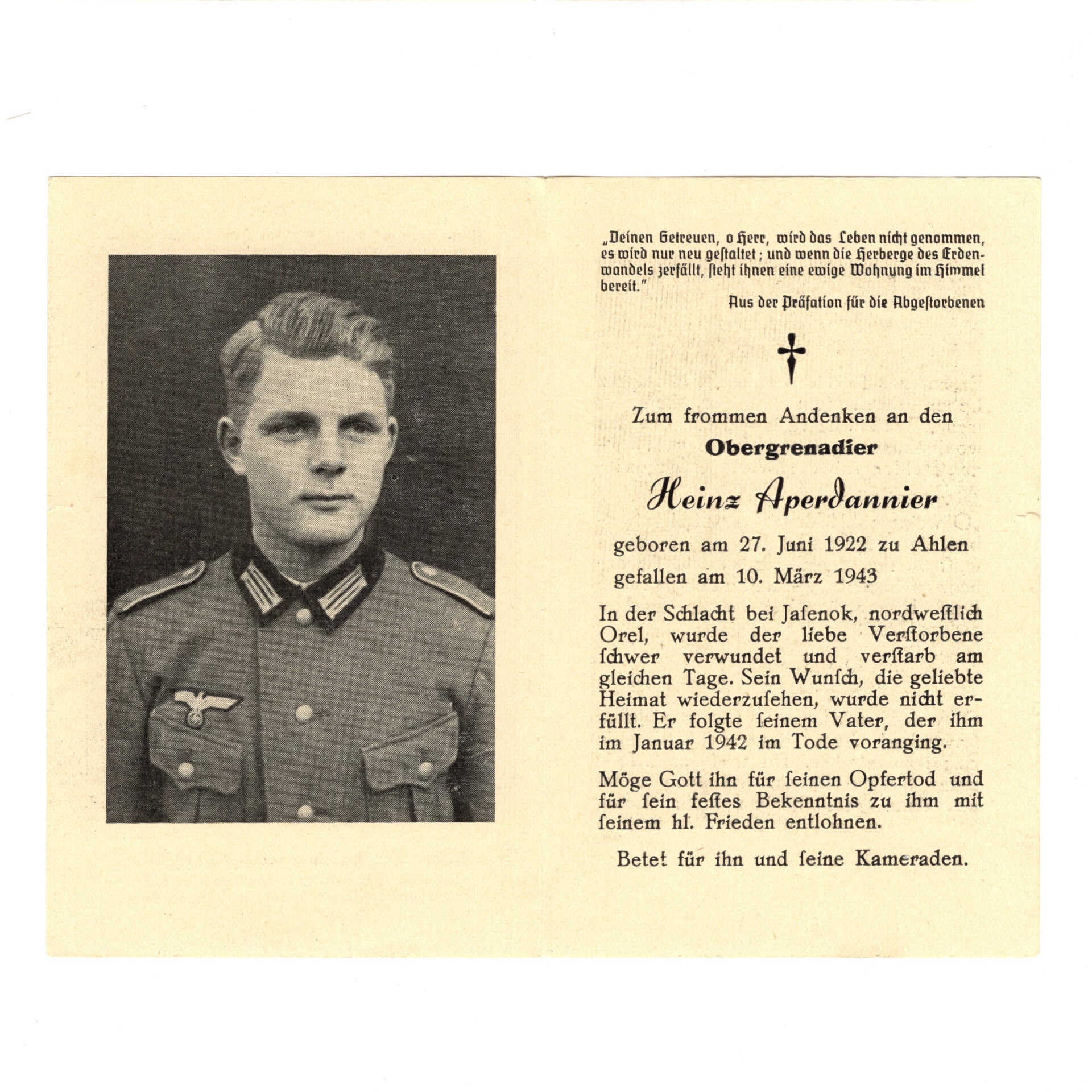 WWII German Death Card Infantry