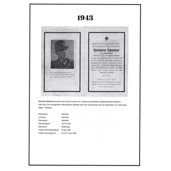 The soldier fought on the Eastern Front and was killed there. A nice addition to the collection!