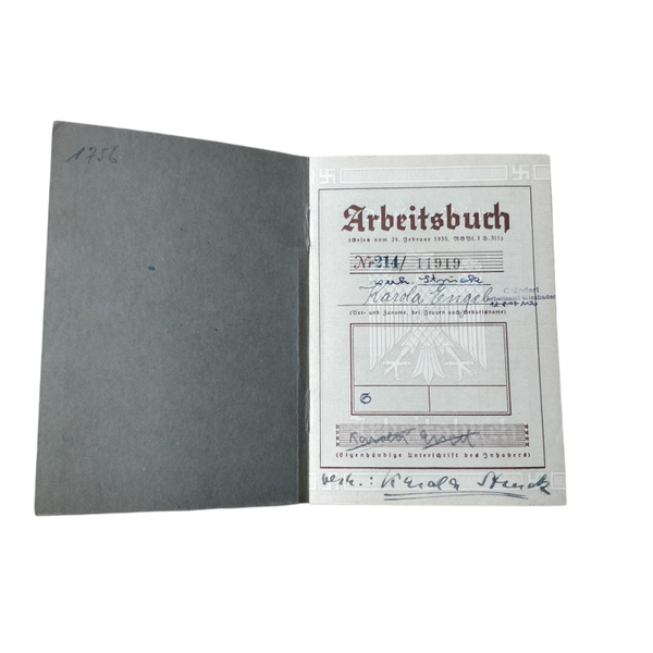 The arbeitsbuch is very well known, it belongs in every collection of the German collector. Of course the workbook has some signs of use. The owner of the arbeitsbuch was born in Paris! An interesting addition to the collection!
