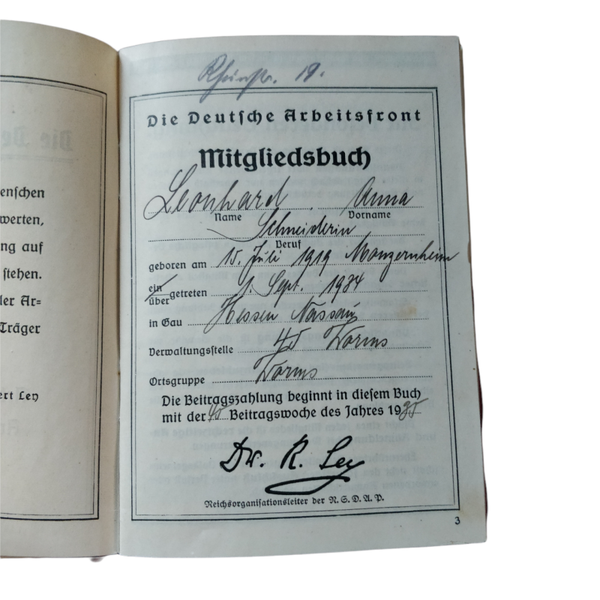 The mitgliedsbuch is in good condition and even has the sticker with name on the front! It is nicely filled in and perfect for a German collection.
