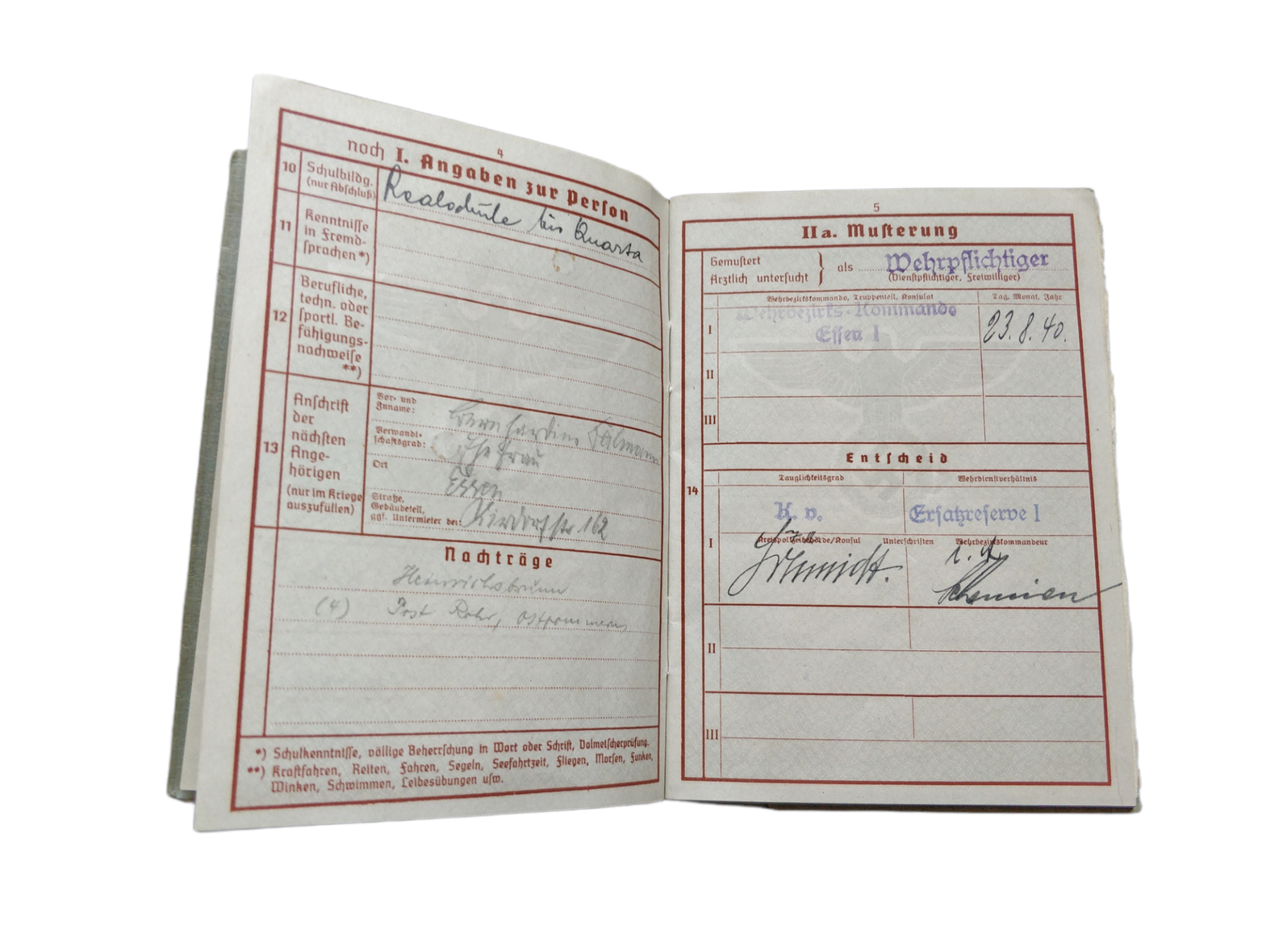 De wehrpass is nog in nette conditie. De foto is nog aanwezig en de teksten zijn goed leesbaar.