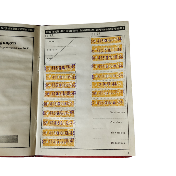 Het mitgliedsbuch verkeerd in goede conditie. Dit is het latere model wat je minder vaak ziet. Het is mooi ingevuld en perfect voor een Duitse collectie.