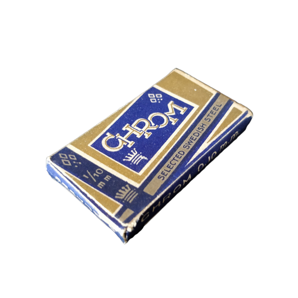 Het pakje scheermesjes is in goede conditie en zelfs nog vol!