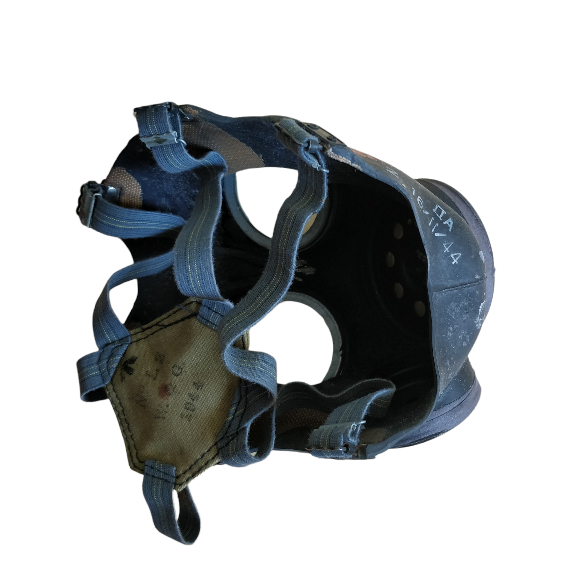 De set is in nette conditie, het betreft de tas, masker en ongebruikt filter. Deze gasmaskers werden gedurende de oorlog gedragen door het britse en canadese leger. De set is gestempeld en na de oorlog verkocht aan denemarken, waardoor er een extra CF stempeltje op staat. Een leuke set om toe te voegen aan je collectie! Deze set is op naam met nog een service nummer en heeft achterop extra haken voor bevestiging aan een riem.