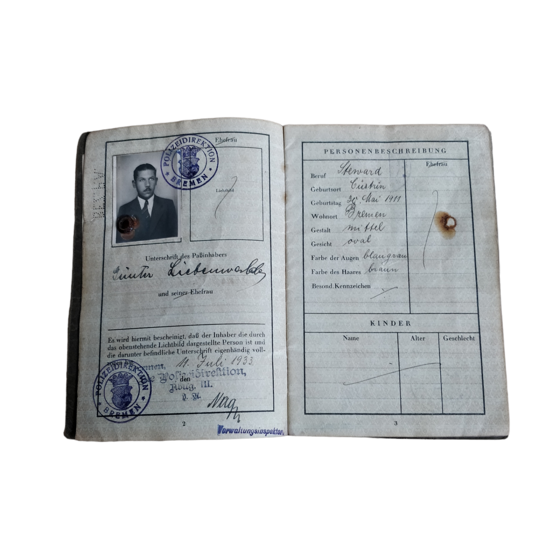 WWII German Reisepass Bremen