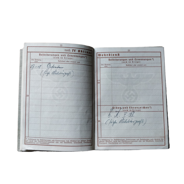 The Wehrpass is still in good condition and has some nice additions to information. The photo and the additions show that this man served in the First World War and received medals in the process. A nice piece to explore further and add to your collection!