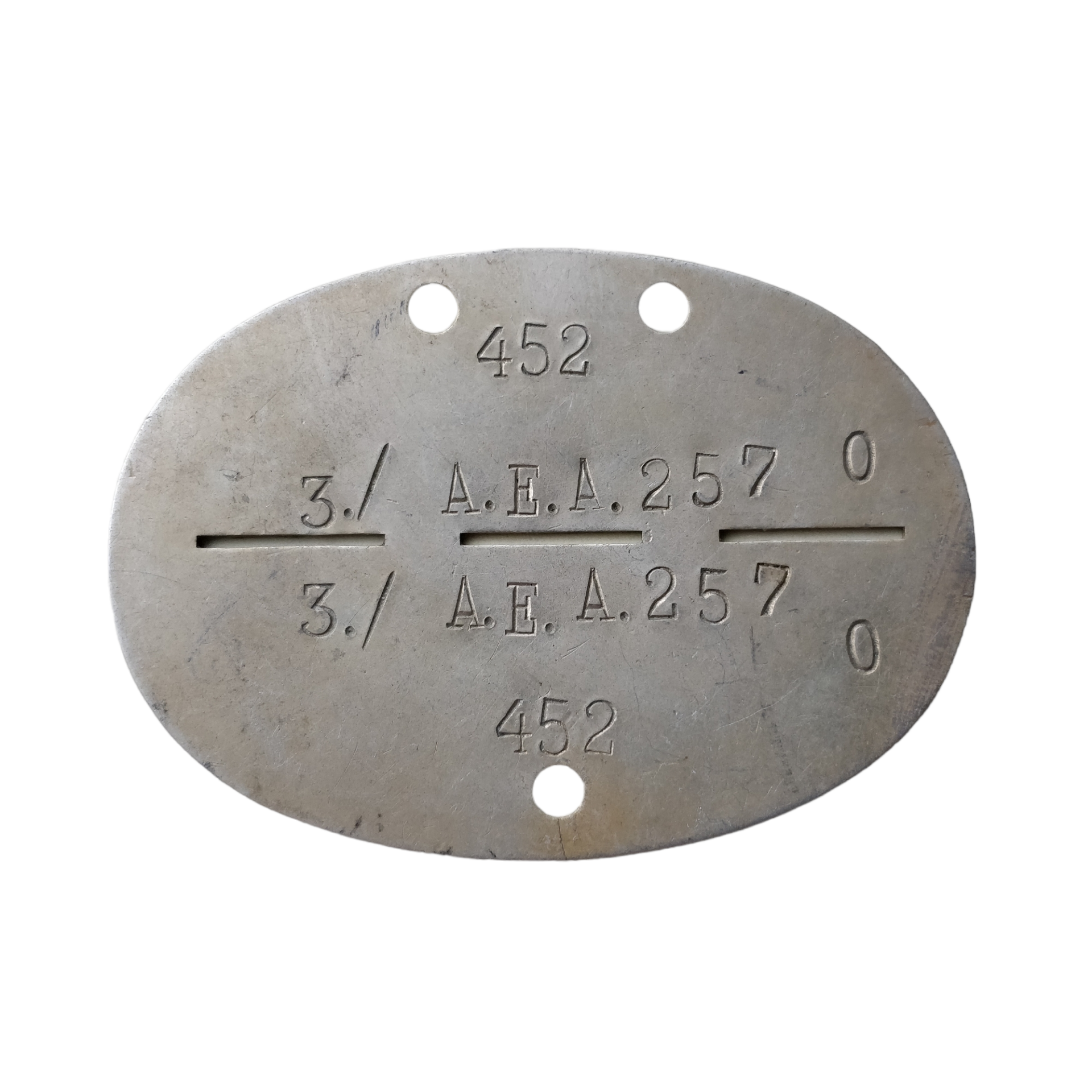 WWII German Erkennungsmarke EKM 3./ A.E.A. 257